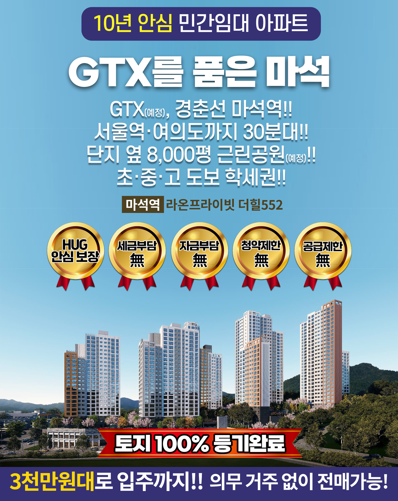마석역 라온프라이빗 더힐552 방문예약 고객의 개인정보를 수집합니다. 수집한 개인정보는 방문예약 이외의 목적으로는 사용하지 않으며, 모집 기간 완료 후 즉시 파기합니다. 개인정보의 수집 및 이용에 대한 동의를 거부할 수 있으며, 이 경우 방문예약 접수가 어려울 수 있습니다.